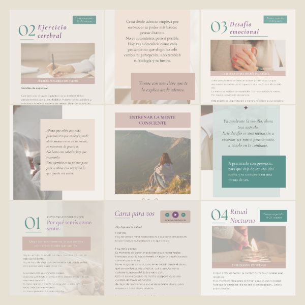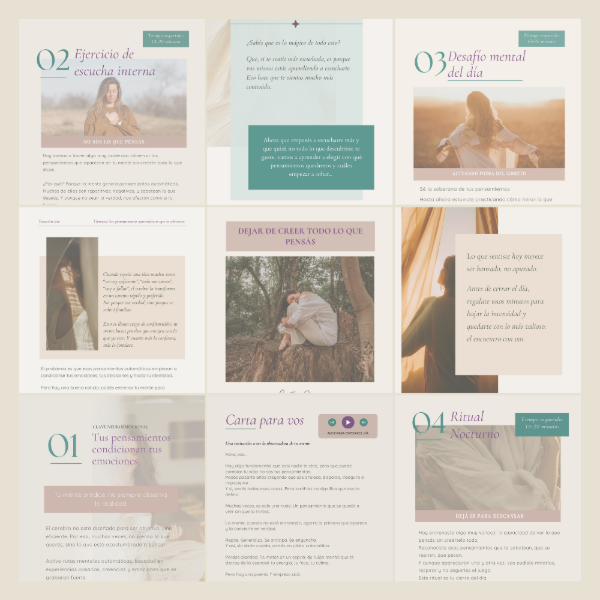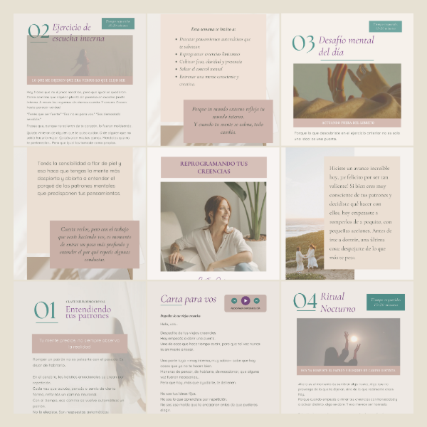 ✔ 5 Guías digitales +120 páginas con propuestas para transformar tu diálogo interno