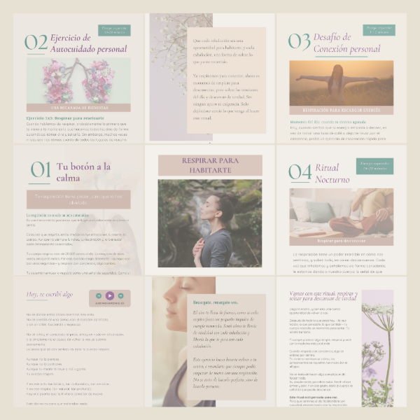 ✔ Audios suaves de respiración, conexión somática y enraizamiento