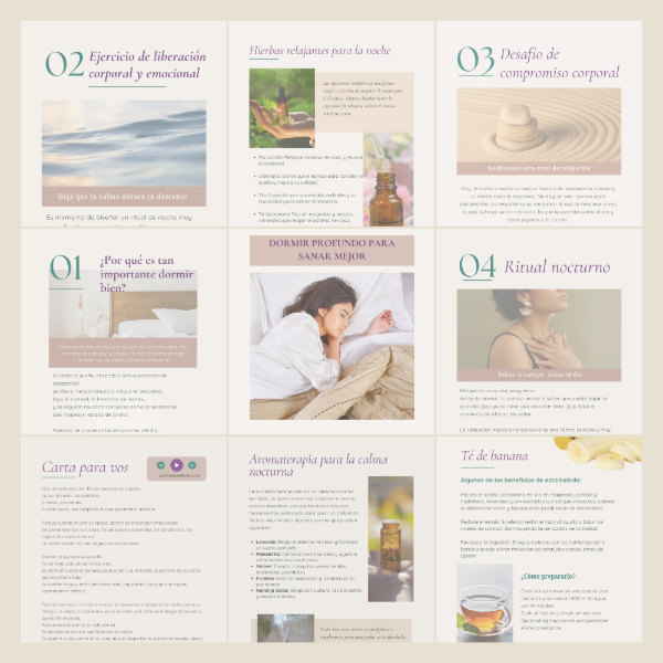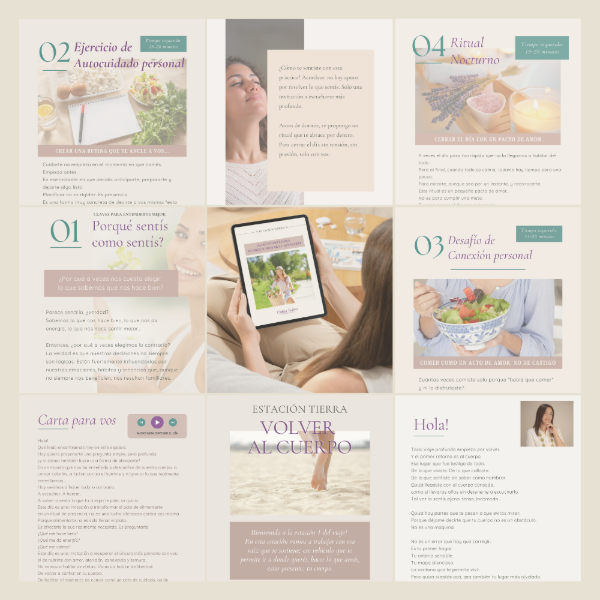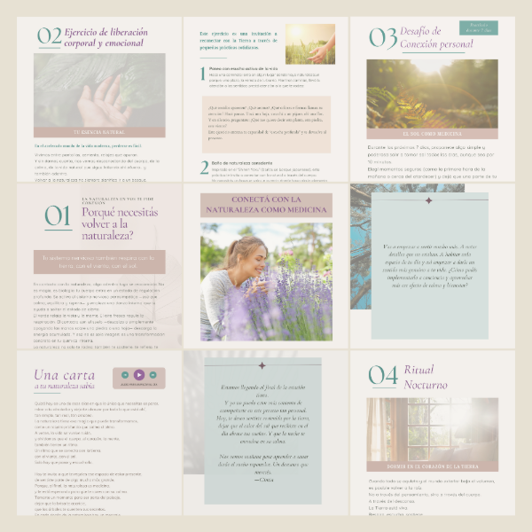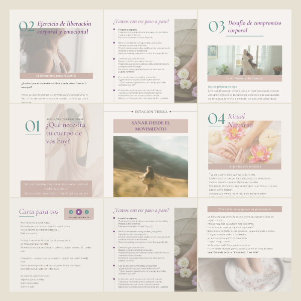 ✔ 5 Guías digitales +120 páginas con propuestas conscientes para volver a habitar tu cuerpo sin exigencias
